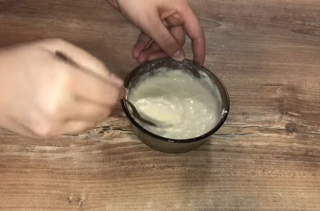Ανακατεύουμε καλά σκεπάζουμε με διάφανη μεμβράνη και αφήνουμε 10 λεπτά σε ζεστό μέρος(προζύμι).