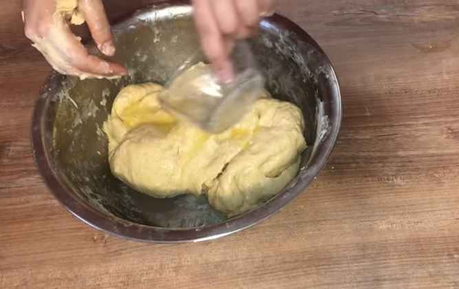 Μετά από μια ώρα αφού έχει φουσκώσει την ξαναζυμώνουμε