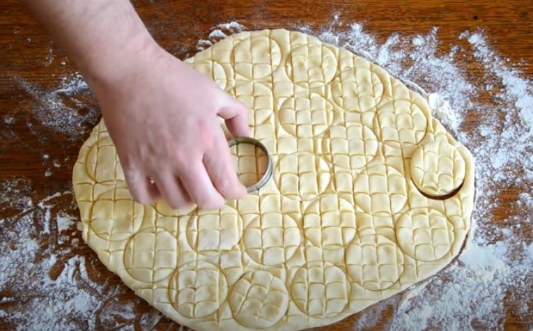 Έπειτα παίρνουμε το κουπατ και κόβουμε τη ζύμη.