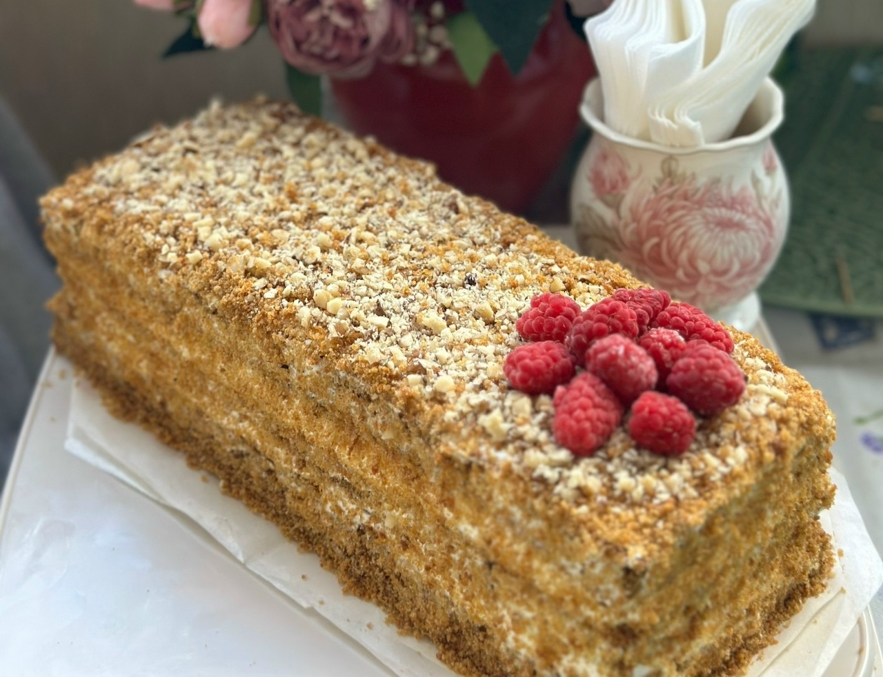 20. Τέλος, βάζω την τούρτα στο ψυγείο για αρκετές ώρες ή, ακόμη καλύτερα, για όλο το βράδυ, σκεπάζοντάς την με μεμβράνη.