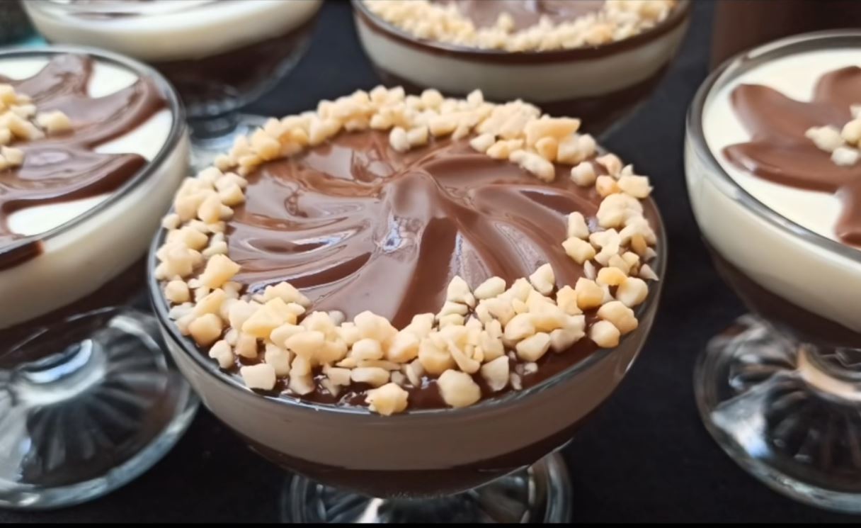 Γεμίζουμε μέχρι την μεση τα μπολάκια σερβιρίσματος και αφήνουμε να κρυώσουν.