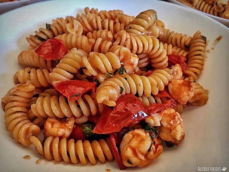 Βίδες με γαρίδες, ντομάτα και βασιλικό