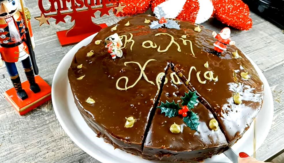 βλέπουμε σε αυτό το σημείο ότι είναι έτοιμη αφήνουμε 5-6 λεπτά και να κρυώσει λίγο να σταθεί και βάζουμε πάνω από τη βασιλόπιτα μας για να τη στολίσουμε