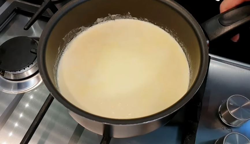 Βάζουμε σ ένα κατσαρολάκι την κρέμα γάλακτος και την τοποθετούμε στη φωτιά να ζεσταθεί. Προσοχή δεν θέλουμε να βράσει.