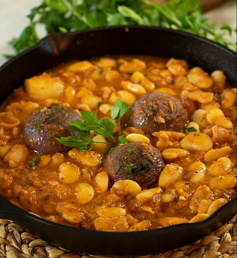 Στραγγίστε το νερό απο τα φασόλια που είχατε όλη νύχτα. Τοποθετήστε τα φασόλια σε μια μεγάλη κατσαρόλα και καλύψτε με άφθονο νερό. Αφήστε να πάρουν βράση και μειώστε τη φωτιά στο μισό. Μαγειρέψτε μέχρι να γίνουν τρυφερα περίπου 40 λεπτά. Θα συνεχίσουν να μαγειρεύονται στη σάλτσα, οπότε μην τα βράζετε πάρα πολύ.