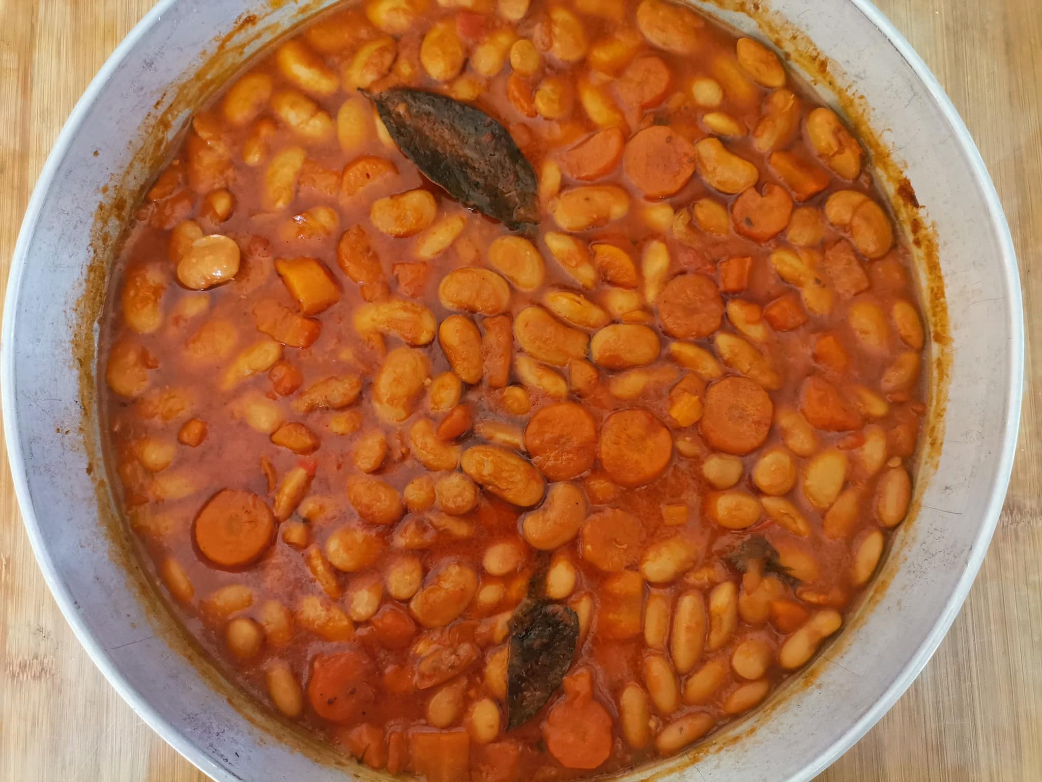 Βράζω έως ότου όλα να έχουν μαλακώσει. Μεταφέρω το περιεχόμενο της χύτρας σε ταψί μαζί με όλο το ζουμί και ψήνω μέχρι να πιει το νερό και να μείνει το λάδι + αλατοπίπερο.