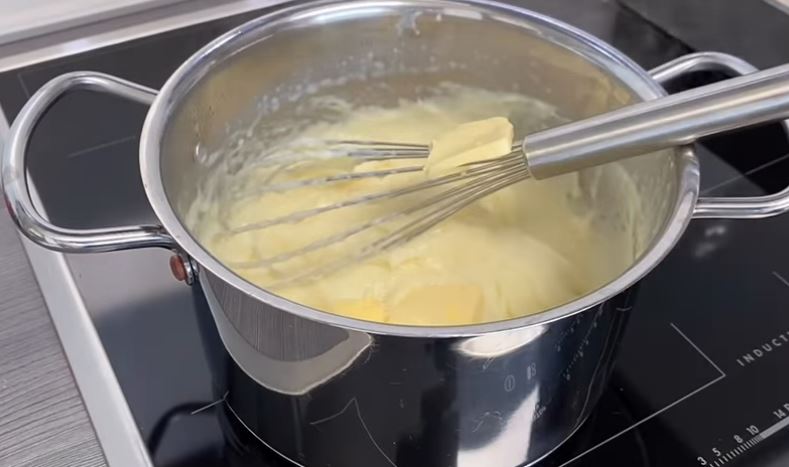 Μόλις πήξει η κρέμα σβήνω την φωτιά και προσθέτω το βούτυρο και ανακατεύω να λιώσει