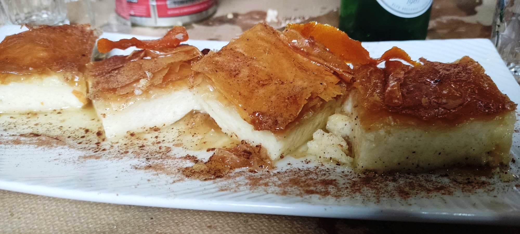 Μόλις ετοιμαστεί, το βγάζουμε καυτό από το φούρνο και χύνουμε από πάνω το κρύο σιρόπι. Αφήνουμε το γλυκό να κρυώσει και σερβίρουμε με λίγη κανέλα.