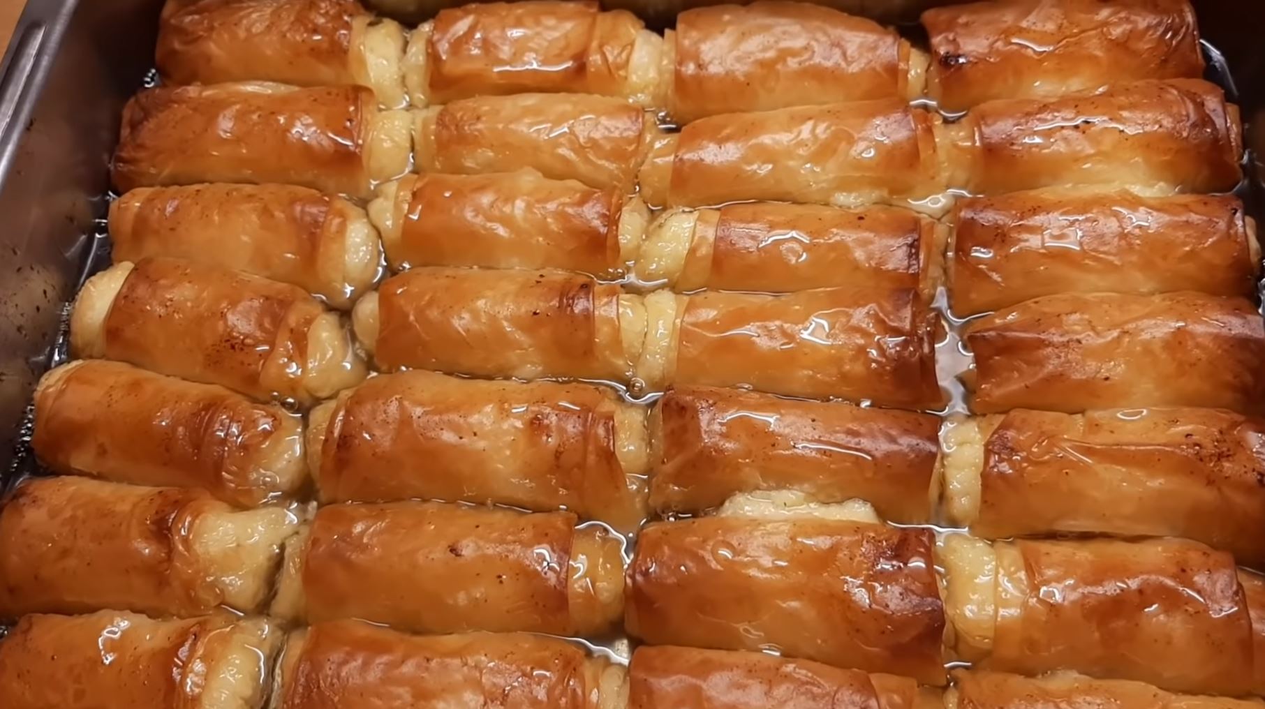 Μόλις βγάζουμε από το φούρνο οπως ειναι ζεστα σιροπιάζουμε κατευθειαν με το κρύο σιρόπι και αφήνουμενα τραβηξουν το σιροπι και να κρυώσουν.