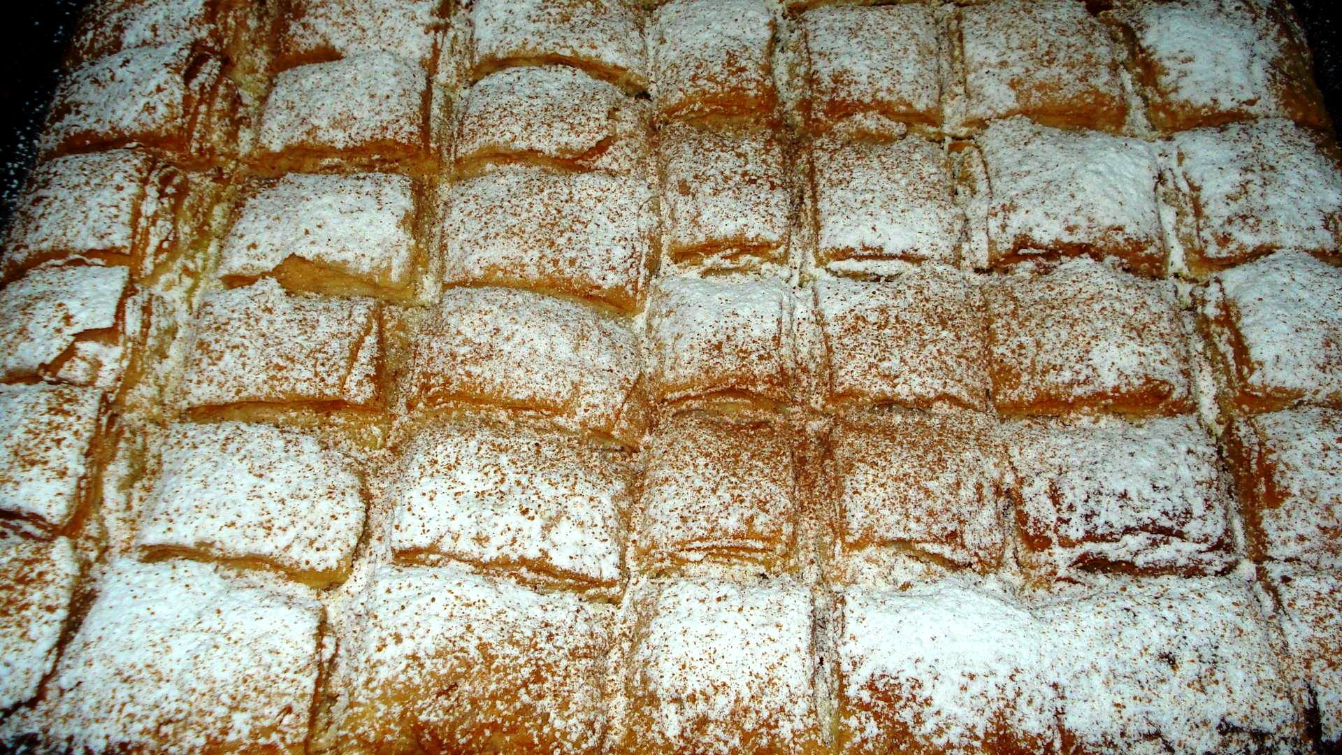 Ξεφουρνιζουμε,και πασπαλίζουμε με αχνη να καλυφθεί καλά και μετά με κανέλα