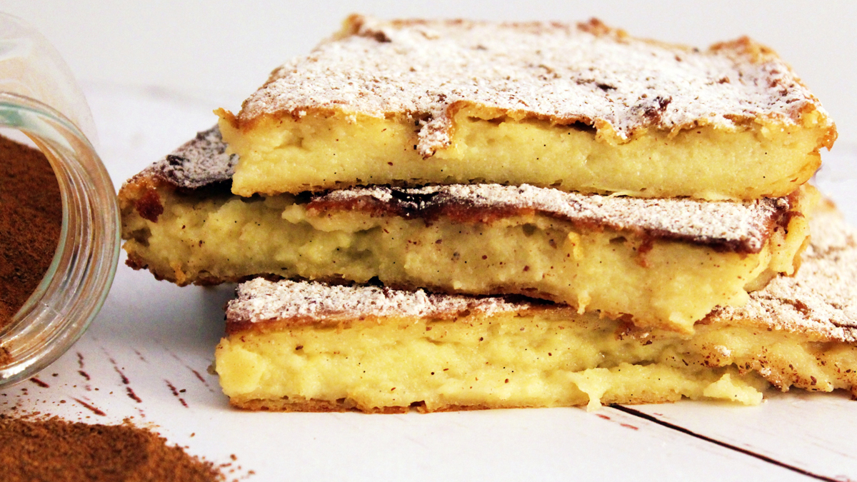 Πασπαλιστε με ζάχαρη άχνη και κανέλα ή σκόνη κακάο. Κόψτε και σερβίρετε!