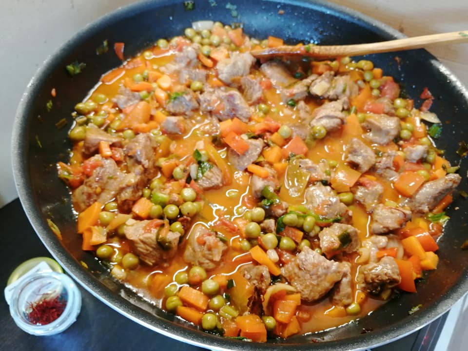Σήμερα δοκίμασα έναν αυτοσχεδιασμό γαλοπούλα, λαχανικά και σαφράν.
