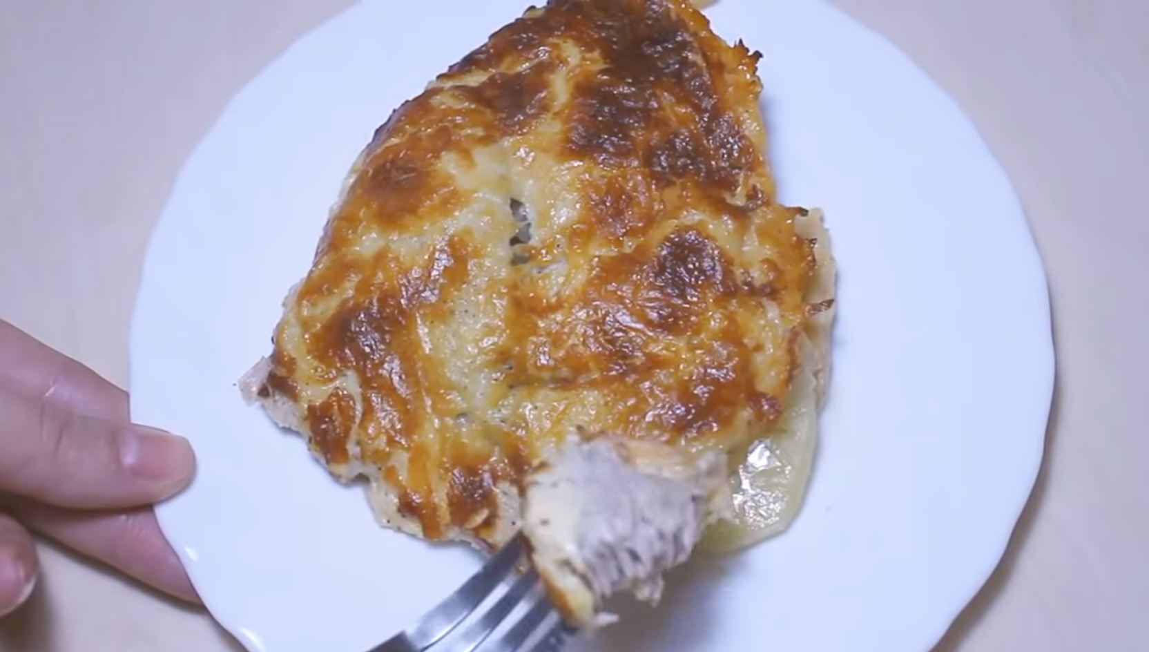 Γαλλική συνταγή χωρίς μαγιονέζα με πατάτες. Ασυνήθιστα νόστιμη γαλαπούλα με πατάτες . Η μαρινάδα κάνει το κρέας τρυφερό, ζουμερό και νόστιμο με μία ωραία κρούστα από τυρί. Φροντίστε να ετοιμάσετε αυτό το πιάτο το γρηγορότερο.