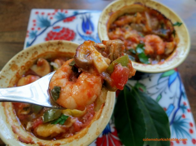 Μπορείτε να ψήσετε τις γαρίδες με τη σάλτσα λαχανικών σε ένα πυρέξ.