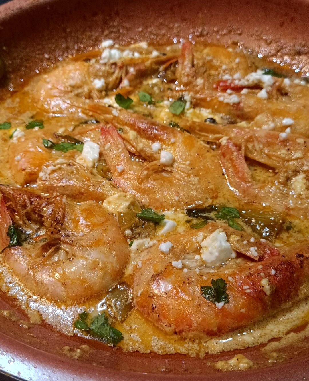 Αφού εξατμιστεί το αλκοόλ βάζω τις γαρίδες μου( πλυμένες και καθαρισμένες)να πάρουν ωραίο χρώμα  κι από τις δύο πλευρές.
