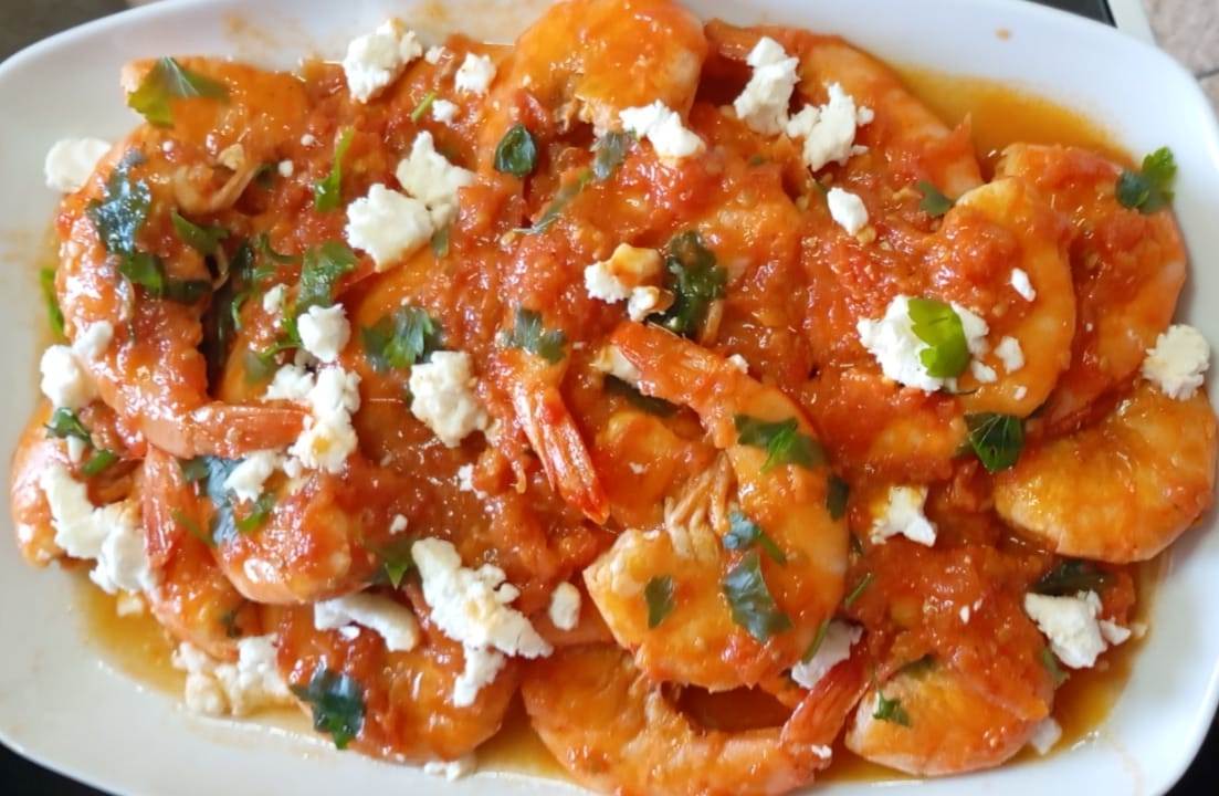 αφού βράσει για λίγο προσθέτω τις γαρίδες σε 3′—4′ είναι έτοιμες.