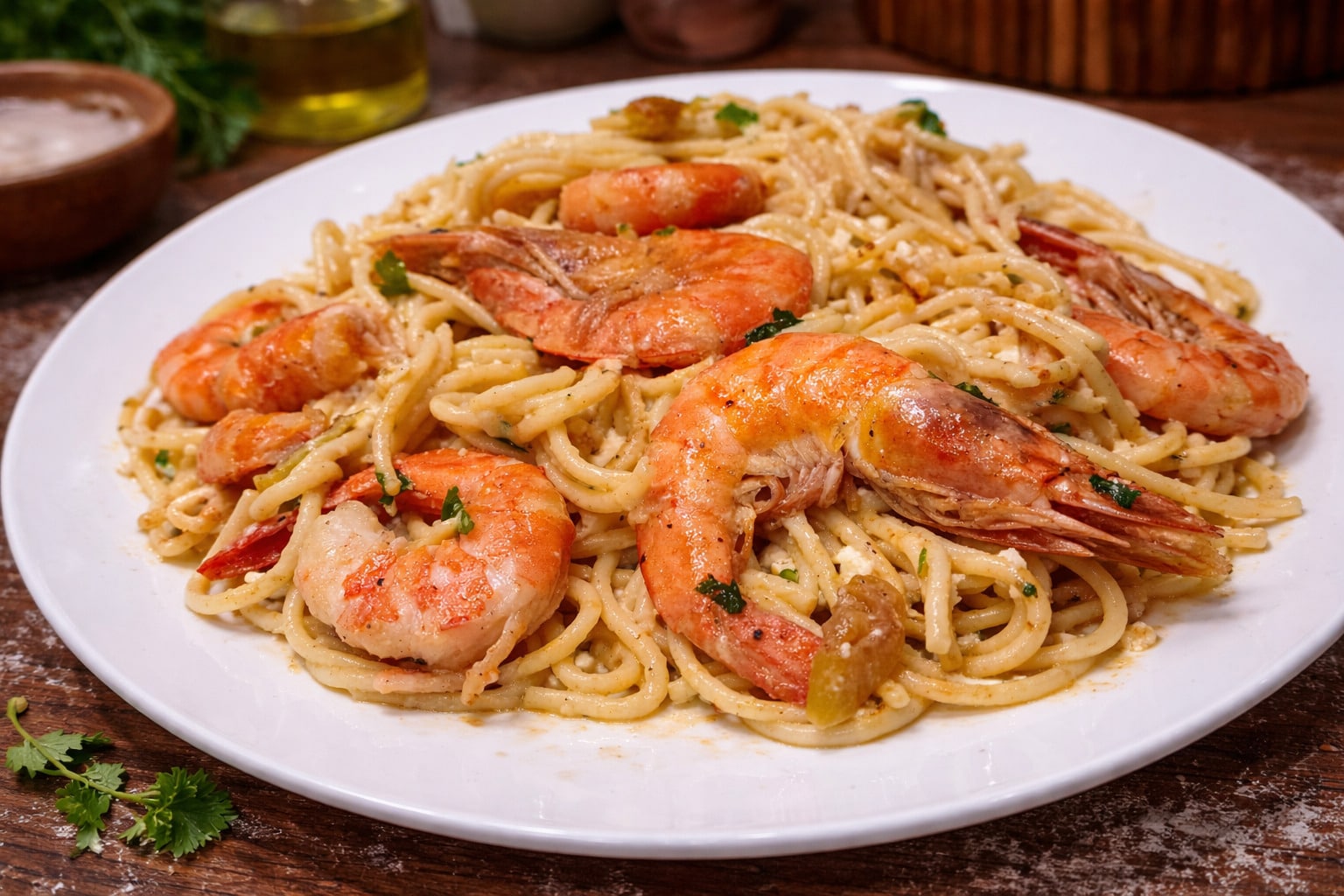 Γαριδομακαρονάδα με Μουστάρδα και Ούζο