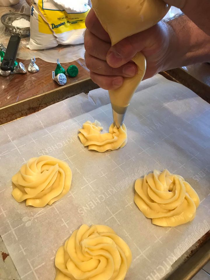 4) Βάλτε το μείγμα σε μια σακούλα ζαχαροπλαστικής(κορνε) και κάντε έναν κύκλο και