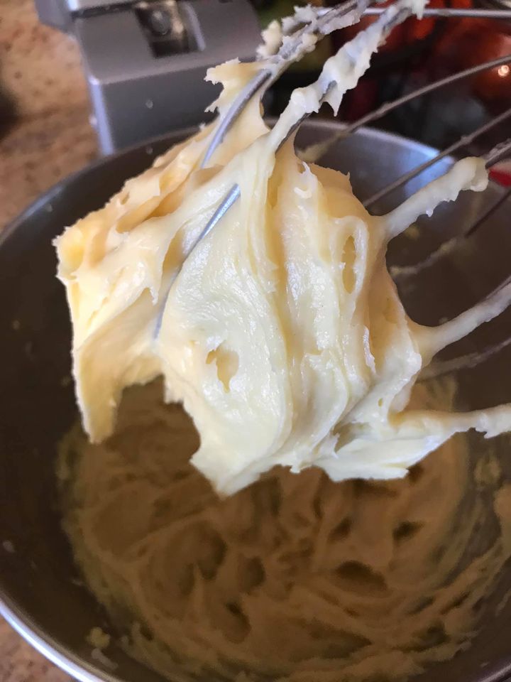 2) Σε ένα μίξερ βάζουμε τη ζύμη όταν είναι ακόμη ζεστή και ανακατεύουμε σε μέτρια υψηλή