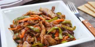 Σκεπάζουμε το τηγάνι με καπάκι και τηγανίζουμε σε μέτρια φωτιά για περίπου 4 λεπτά από κάθε πλευρά, μέχρι να ψηθεί το κοτόπουλο και να ροδίσουν οι πιπεριές.