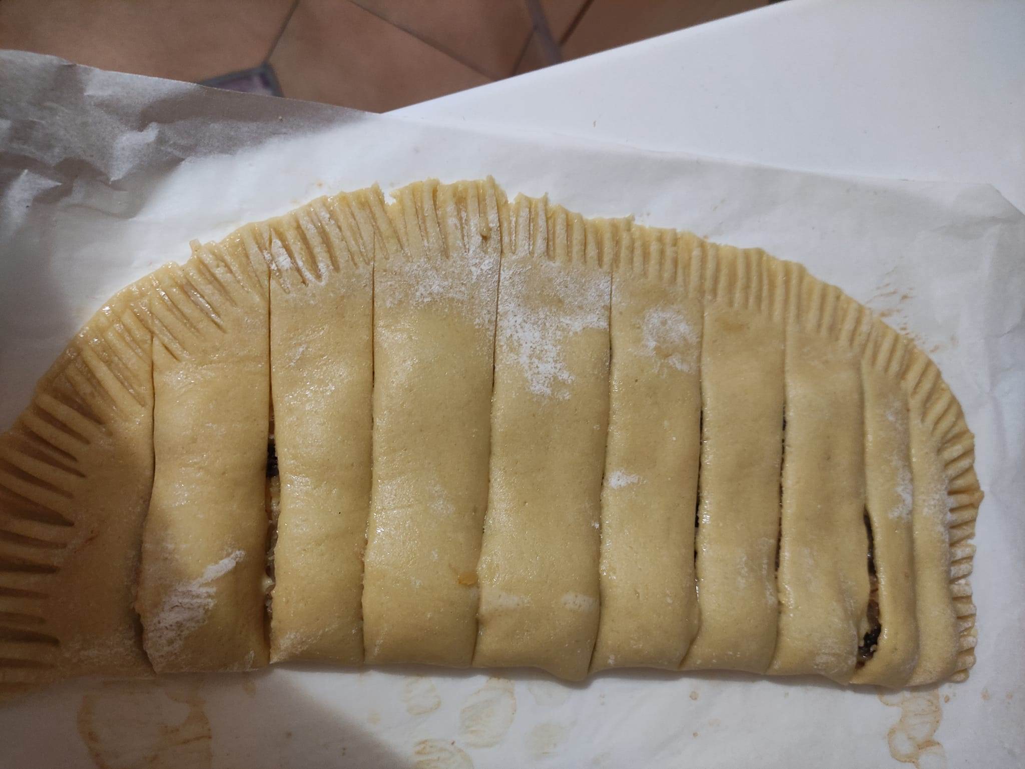 απλώνετε την γέμιση στο μισο ημισφαίριο και κλεινετε διπλωνοντας σφραγίσετε μ ‘ενα πηρουνι
