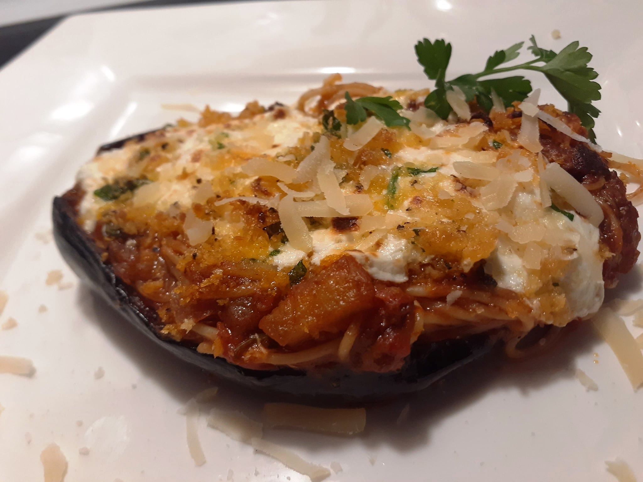 Ο λόγος που αποφάσισα να προσθέσω ζυμαρικά σε αυτή τη συνταγή είναι επειδή παρατήρησα ότι είχα αρκετή σάλτσα και τις 2 μελιτζάνες με αυτόν τον τρόπο θα μπορούσα να έχω δύο μεσημεριανά γεύματα κατά τη διάρκεια της εβδομάδας. Αυτές οι μελιτζάνες βαρκούλες παγώνουν εξαιρετικά καλά. Απλώς τυλίγω το καθένα ξεχωριστά σε μεμβράνη