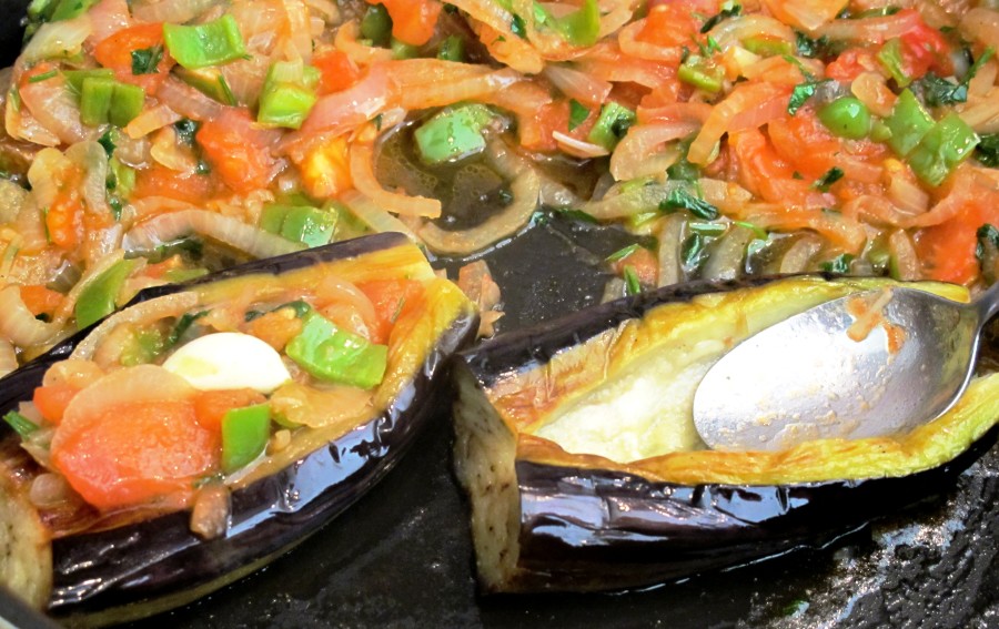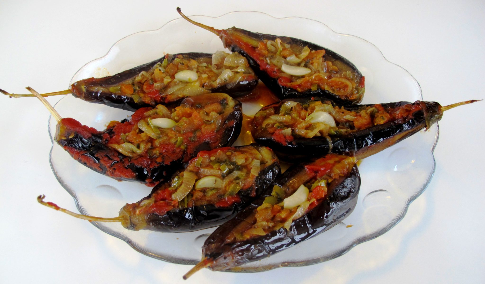 Γεμιστές μελιτζάνες με λαχανικά (Ιμάμ μπαϊλντί) στην κατσαρόλα