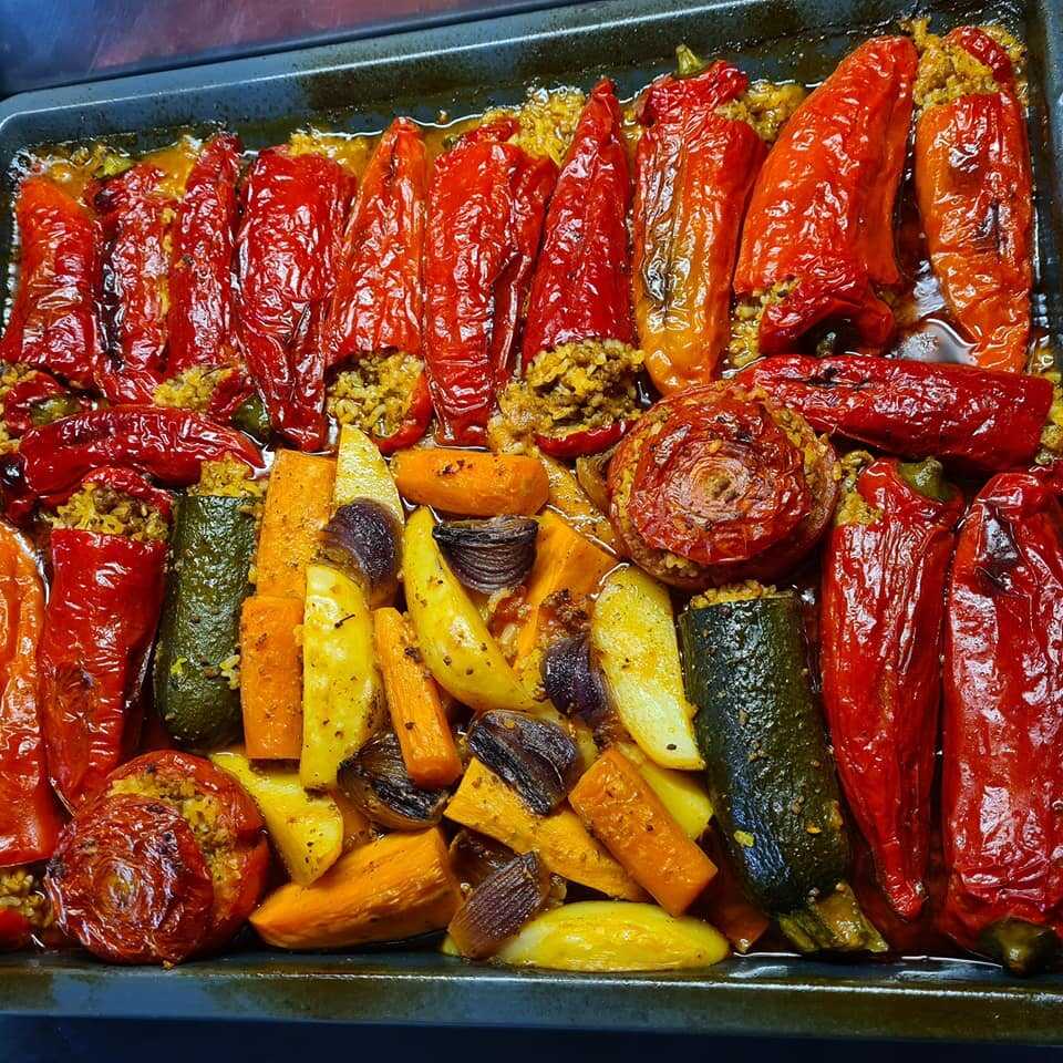 Γεμιστές πιπεριές με ρύζι, κιμά και σταφίδες