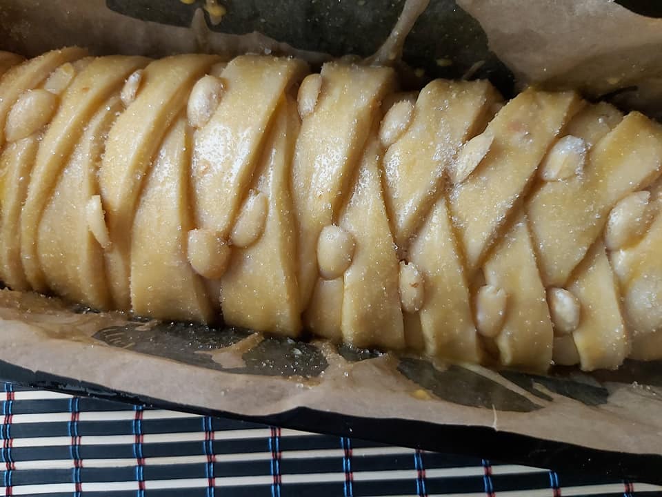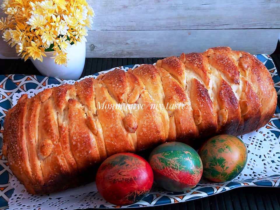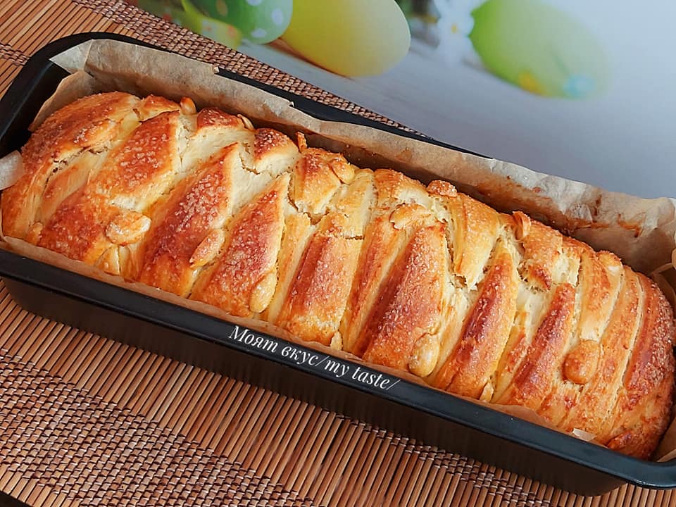 Το διαμορφωμένο ρολό τοποθετείται σε ένα δοχείο κέικ σε χαρτί ψησίματος και περιμένετε να φπυσκώσει. Στη συνέχεια, το ρολό αλείφεται με κτυπημένο κρόκο αυγού με λάδι, προστίθενται φιλέ αμυγδάλου ή κομμένα αμύγδαλα, πασπαλίζονται με ζάχαρη.