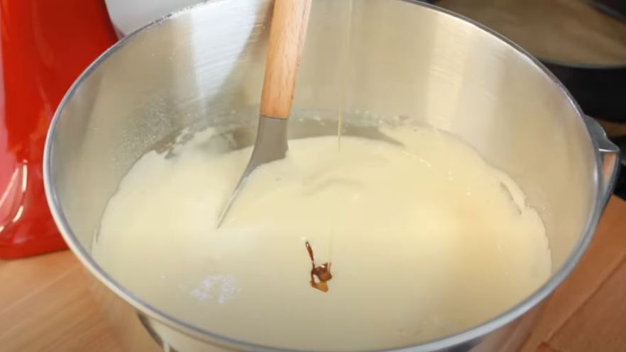 Ρίχνουμε και την βανίλια και ανακατεύουμε από κάτω προς τα πάνω την τόσο όμορφη ζύμη.