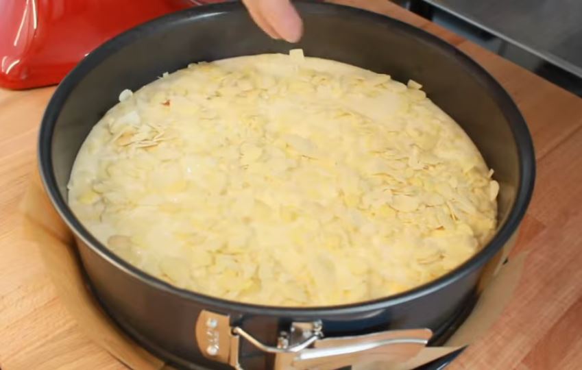Πάνω απο την ζύμη πασπαλίζω με περίπου 100 γραμμάρια φιλε αμυγδάλου
