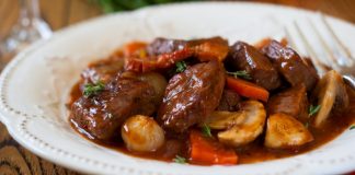 Σόταρα σε λαδακι , κρεμμυδια ξερά , πιπεριες τρικολορε, σκόρδο , φύλλα δάφνης, ντομάτα στον τριφτη κ πελτέ, ζάχαρη, αλατι , πιπερι, μπουκοβο.
