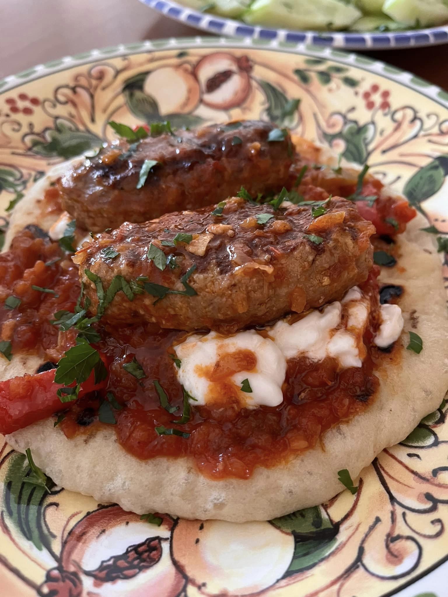 Σερβίρισμα : πίτα , σαλτσουλα, γιαούρτι, κεμπαπ( όποια Θέλει βάζι κρεμμυδι ) μαϊντανό κ πατατούλες🤤🤤