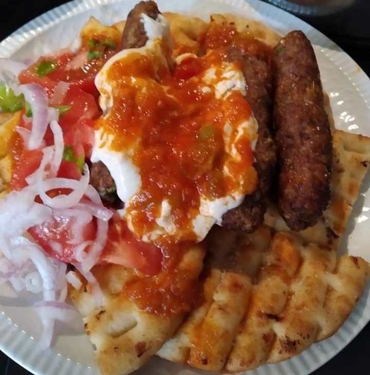 Βάλτε σε πιατο τις πιτες τα κεμπαπ,την σάλτσα γιαουρτιού και απο πανω την σάλτσα ντομάτας