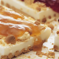 - Τοποθετούμε το ταψί στο ψυγείο. Αφού παγώσει, το κόβουμε σε μερίδες.