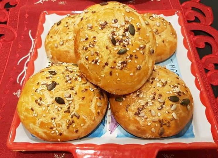 Έπλασα έξι μπαλάκια, τα οποία έβαλα σε ταψί στρωμένο με λαδοκολα. Τα άφησα να ξεκουραστούν, τα τύλιξα με μια πετσέτα και μετά τα άλειψα με χτυπημένο κρόκο αυγού με λίγο νερό και πασπαλισα με σουσάμι και σπόρους. Τα έψησα σε προθερμασμένο φούρνο 180 βαθμών, μετά τα τύλιξα σε μια πετσέτα και πριν τα δοκιμάσουμε, άλειψα βούτυρο. Λοιπόν, τα γιαουρτοπιτάκια είναι πάντα πιο νόστιμα από τα κέικ με μαγιά!