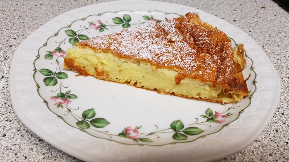 Την ψήνουμε στους 180 βαθμούς για 40 λεπτά. Αφού ψηθεί, δεν την βγάζουμε αμέσως από τον φούρνο. Την αφήνουμε μέσα με ανοιχτή πόρτα να κρυώσει. Πριν την φάμε την πασπαλίζουμε με ζάχαρη άχνη.