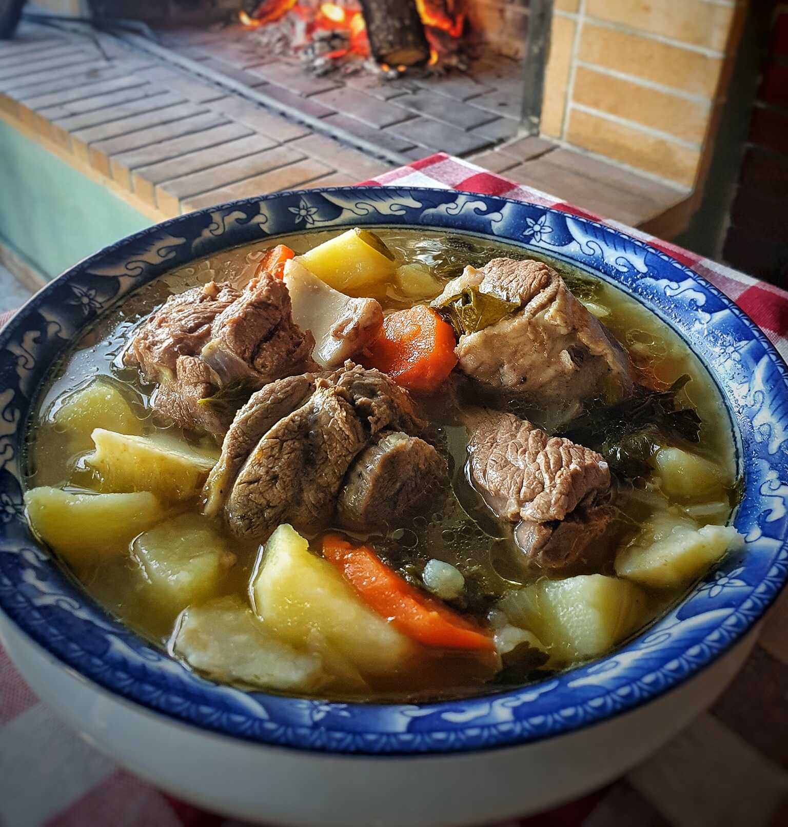 Πλένουμε το κρέας, το κόβουμε σε μερίδες και το βάζουμε σε κατσαρόλα με αρκετό νερό. Το βράζουμε για 10 έως 15 λεπτά και ξαφρίζουμε με τρυπητή κουτάλα. Βγάζουμε από τη φωτιά χύνουμε το νερό και προσθέτουμε άλλο ζεστό. (Ρίχνουμε αρκετό νερό για να έχουμε στο τέλος, αφού βράσουν και τα λαχανικά, ζουμερή σούπα).