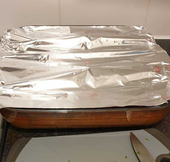 7- Αφαιρέστε το αλουμινόχαρτο, προσθέστε ένα ποτήρι ζεστό νερό, αν χρειαστεί, και