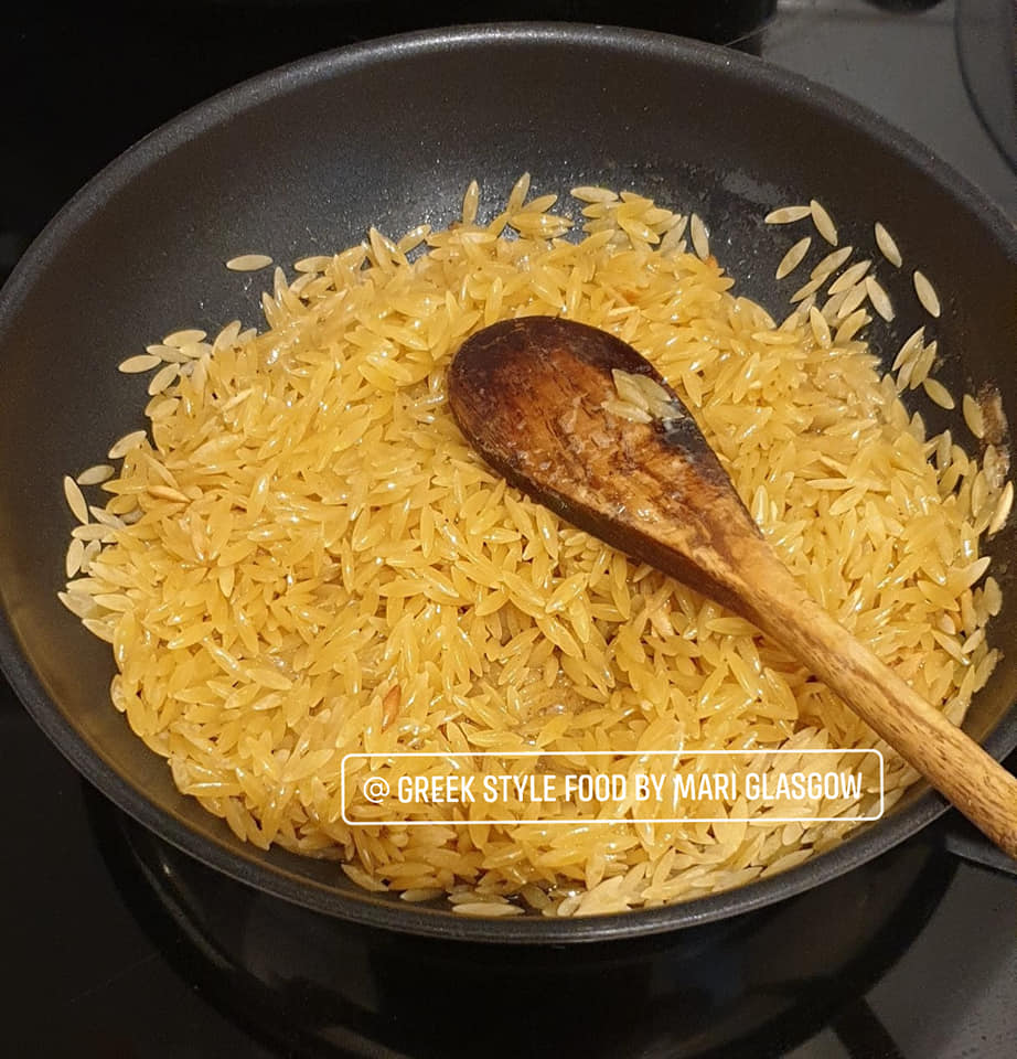 250 γραμμάρια ζυμαρικών, (κριθαράκι χοντρό η μέτριο)
