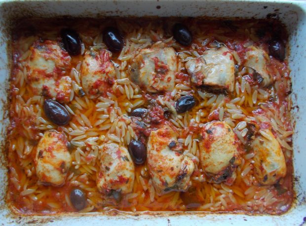 - Βάζω το ταψάκι σε καλά προθερμασμένο φούρνο και ψήνω στις αντιστάσεις στους 200 βαθμούς περίπου για 45-50 λεπτά. Ανάλογα πάντα με το φούρνο.