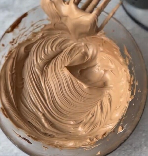 Βγάζουμε το μείγμα από το ψυγείο και συνεχίζουμε το χτύπημα στην υψηλότερη ταχύτητα του μίξερ.