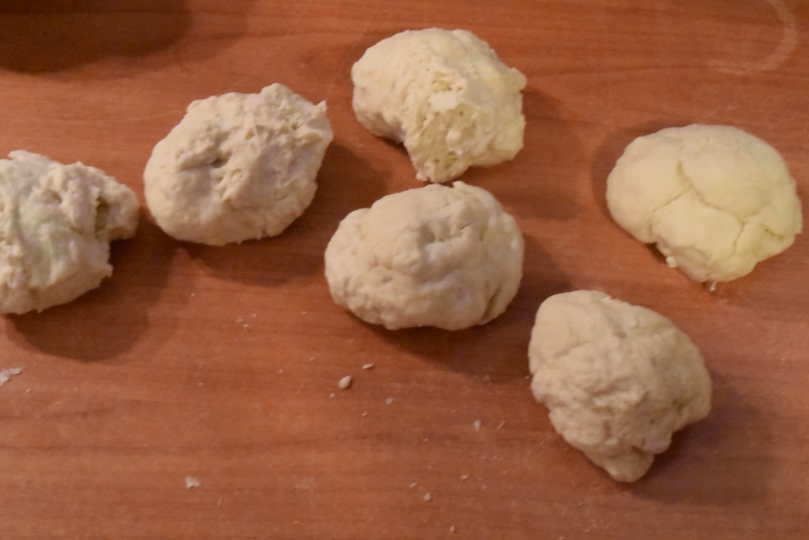 Το κάνουμε σαν μπάλα και κόβουμε κομμάτια από το ζυμάρι σε μέγεθος περίπου όσο ένα μήλο μικρό