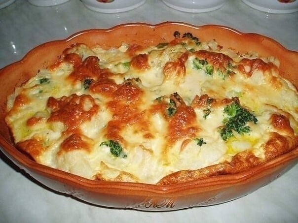 12. Περιχύνω με τη σάλτσα αυγών-κρέμας το φαγητό, φροντίζοντας να πάει παντού.