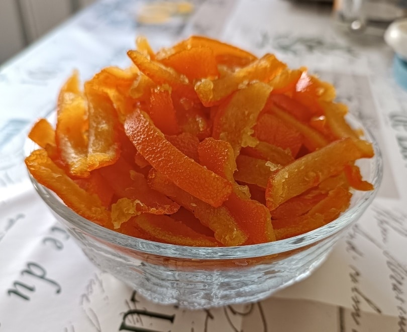 Στραγγίζω τις φλούδες πορτοκαλιού και τις αφήνω να κρυώσουν.