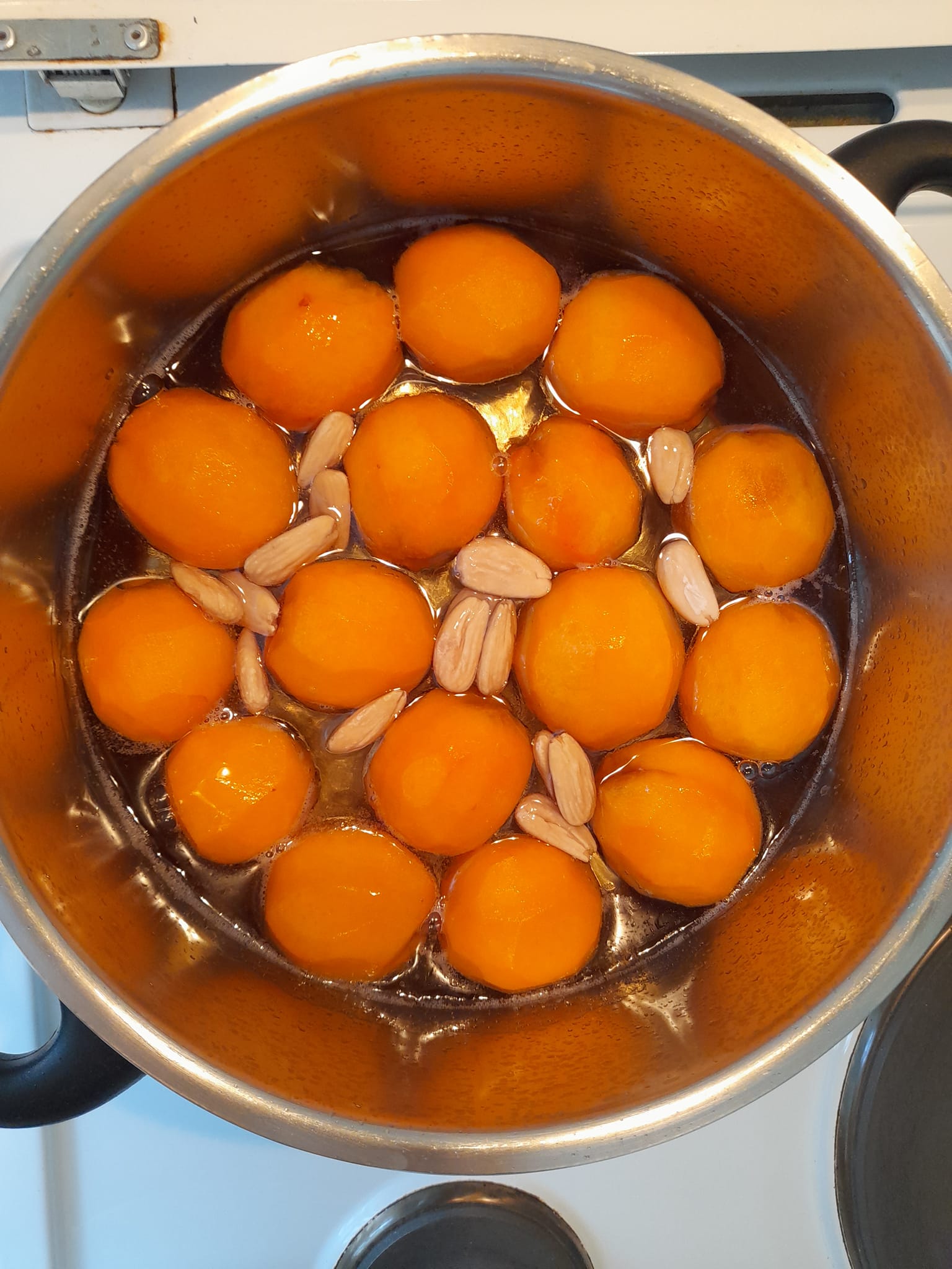 Αφού λιώσει προσθέτουμε μετά τα βερύκοκα. Τα αφήνουμε μέσα για 1 ώρα. Μόλις περάσει η 1 ώρα τα
