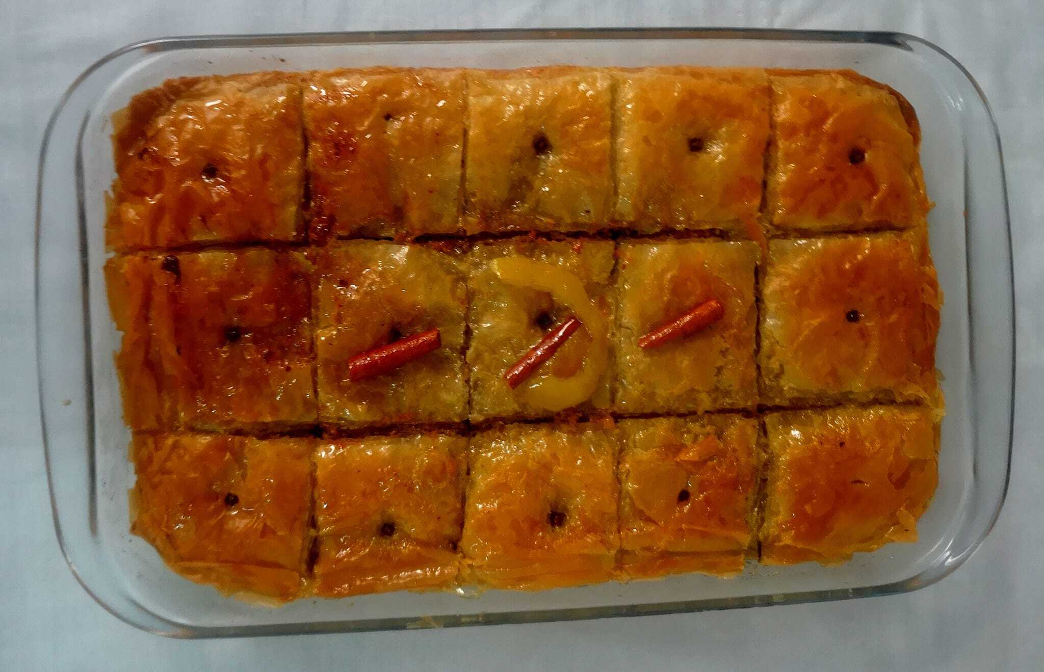 Αφού εχουμε φτιάξει και το σιρόπι και έχει κρυώσει, σιροπιαζουμε αμέσως μόλις βγει η πίτα.