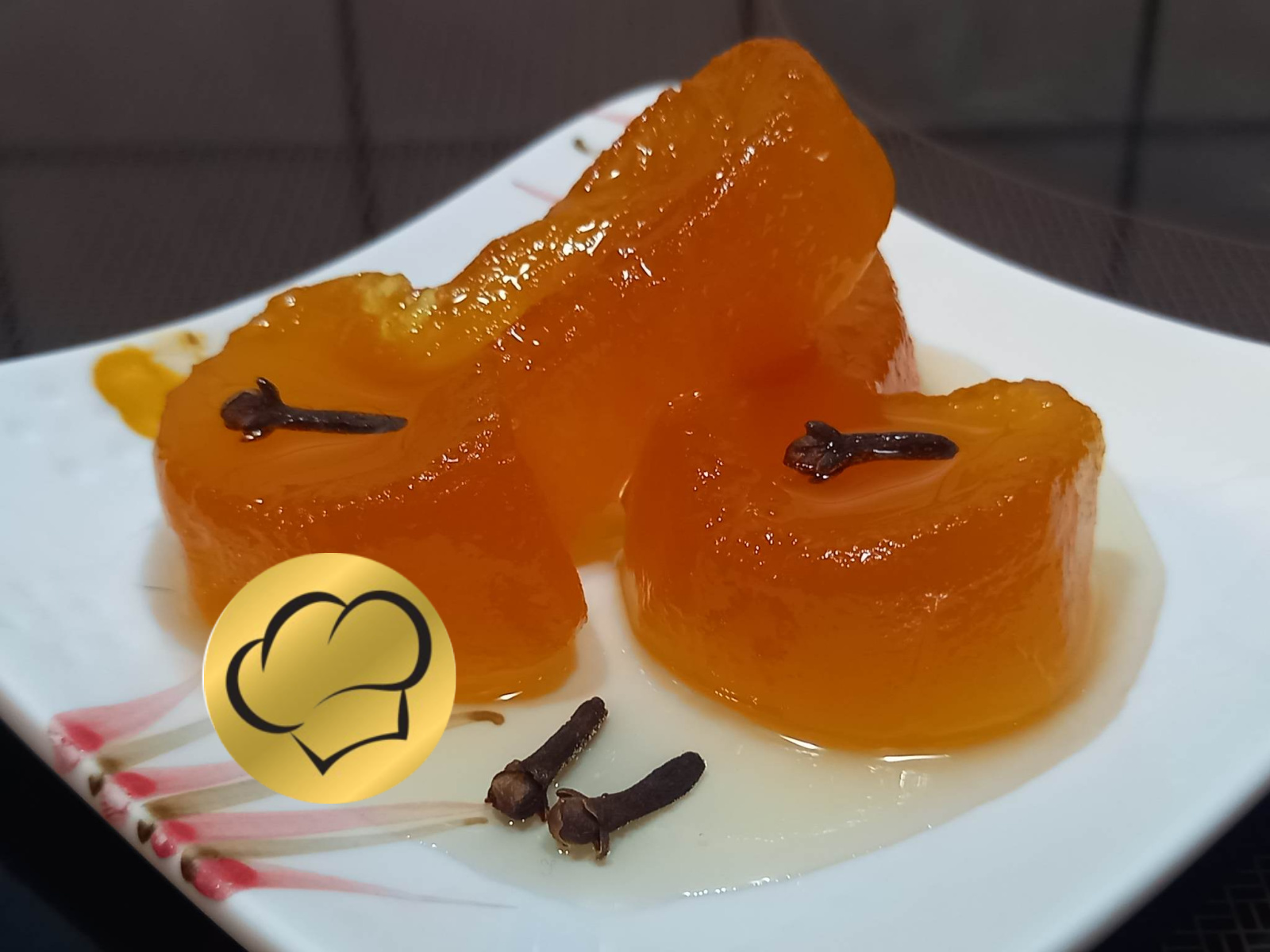 1. Πρώτο Βράσιμο: Βάζουμε στη φωτιά μια κατσαρόλα με τα 3 ποτήρια νερό και τη ζάχαρη . Μόλις η ζάχαρη λιώσει, προσθέτουμε τα κομμάτια κολοκύθας στην κατσαρόλα μαζί με τα γαρύφαλλα .