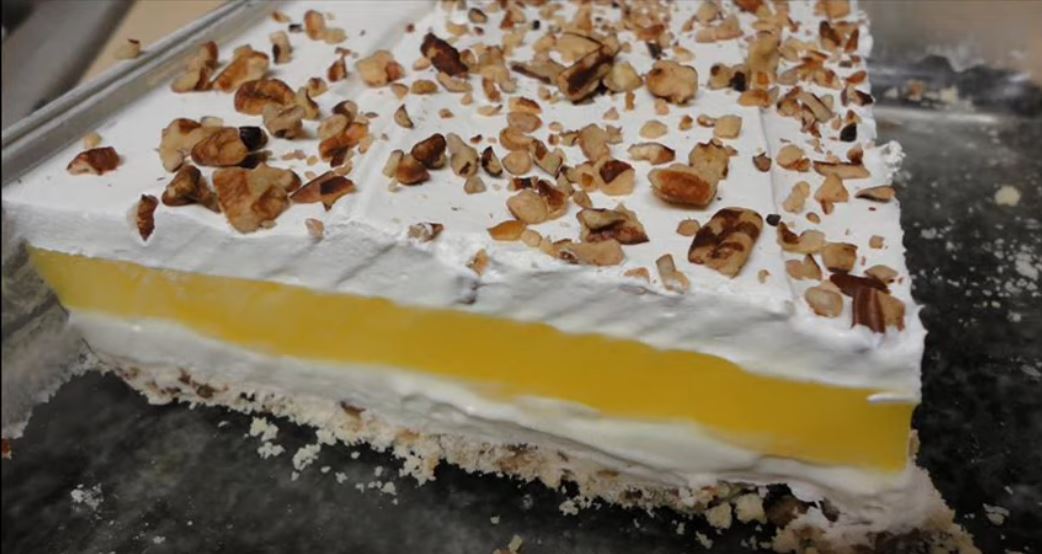 Ρίξτε με το κουτάλι και απλώστε την υπόλοιπη σαντιγι από πάνω. Πασπαλίζουμε με καρύδια.