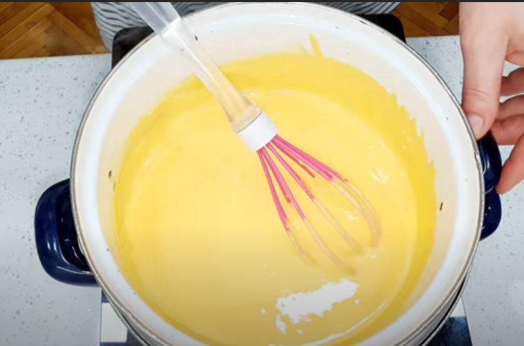 Βάζουμε την κατσαρόλα στην φωτιά και ανακατευουμε συνέχεια να πήξει η κρέμα.